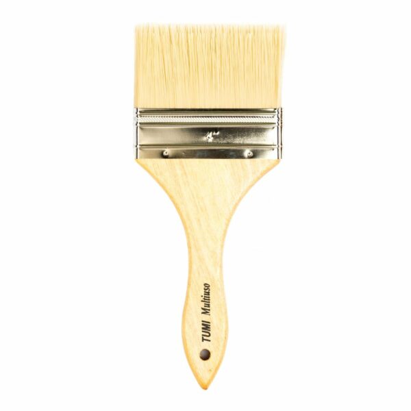 Brocha Tumi Marfil es elaborado con Nylon de alta durabilidad diseñado para la aplicación en diversas superficies y es resistente a solventes. Los filamentos son color marfil y el mango es de madera.