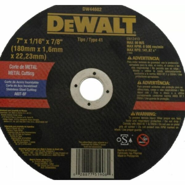 DISCO CORTE METAL INOX 7″(1/16″) DW44602