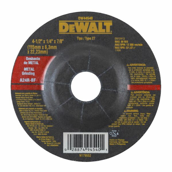 DISCO DESBASTE METAL 4 1/2″(1/4″) DW44540 DW